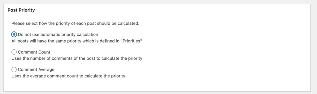 It will have other sections too like “Additional Pages,” “Post Priority,” “Sitemap Content,” and others. But you didn’t need to make any changes. The default settings are pretty good. One change that I did make, however, was this: